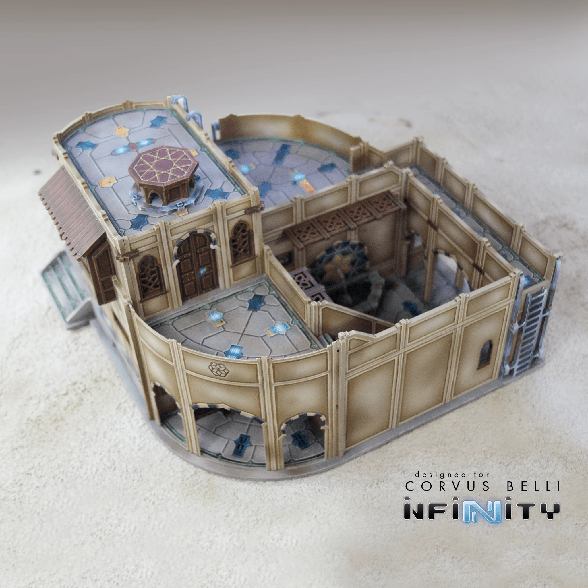 The Alcazaba Caravansary is a massive centerpiece for our range of Haqqislam-themed terrain for Infinity the Game. This unique building offers four levels of play with five unique rooms.